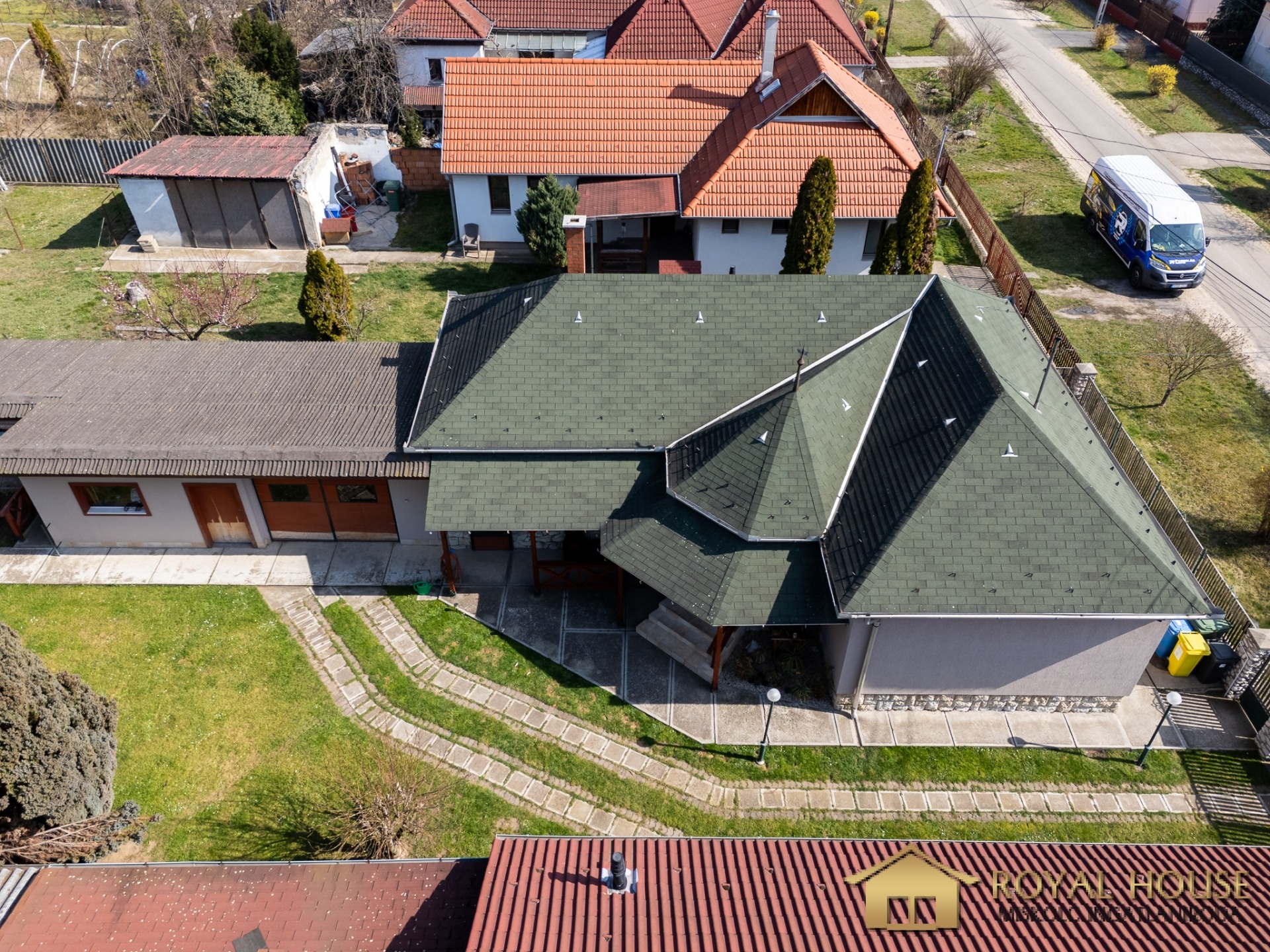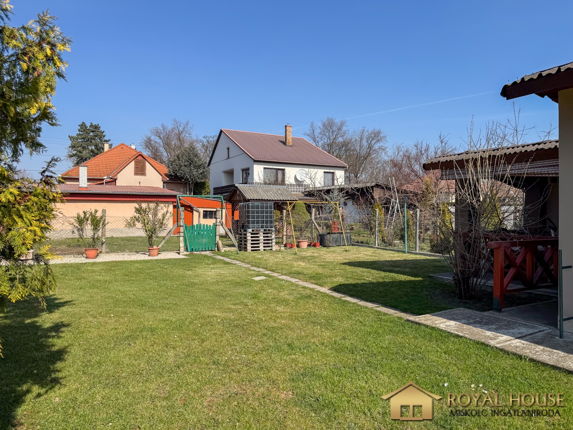 A 614 m²-es telek pont ideális: elfér rajta a gyerek, a kutya, a bogrács, meg még egy „majd egyszer lesz itt egy medence” projekt is. Az udvar gondozott, szóval nem dzsungelből indul a sztori – de ha szeretnél, csinálhatsz belőle Amazonast.