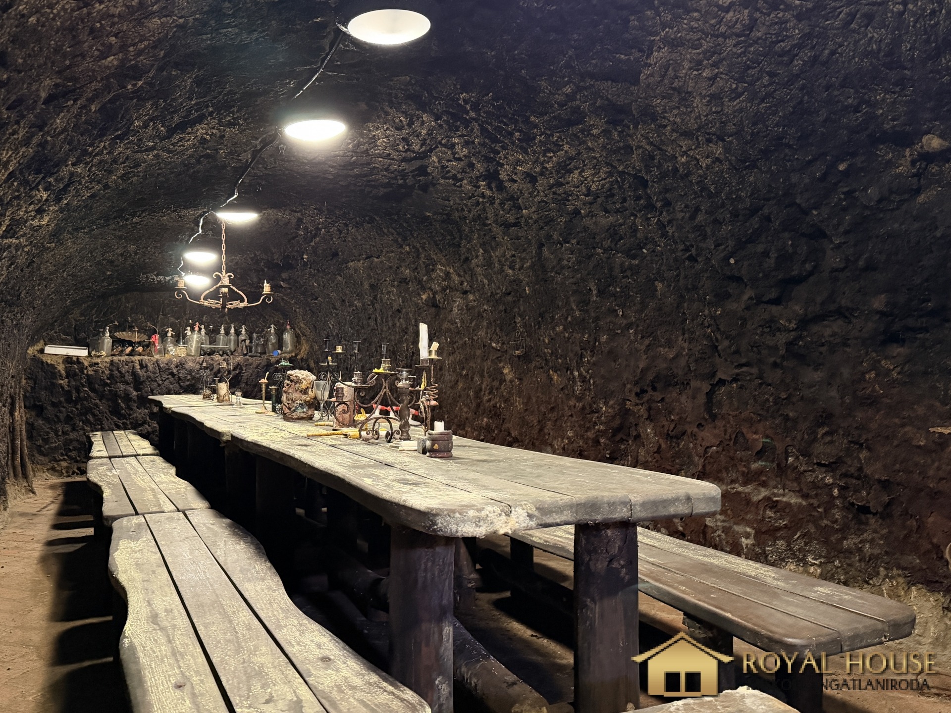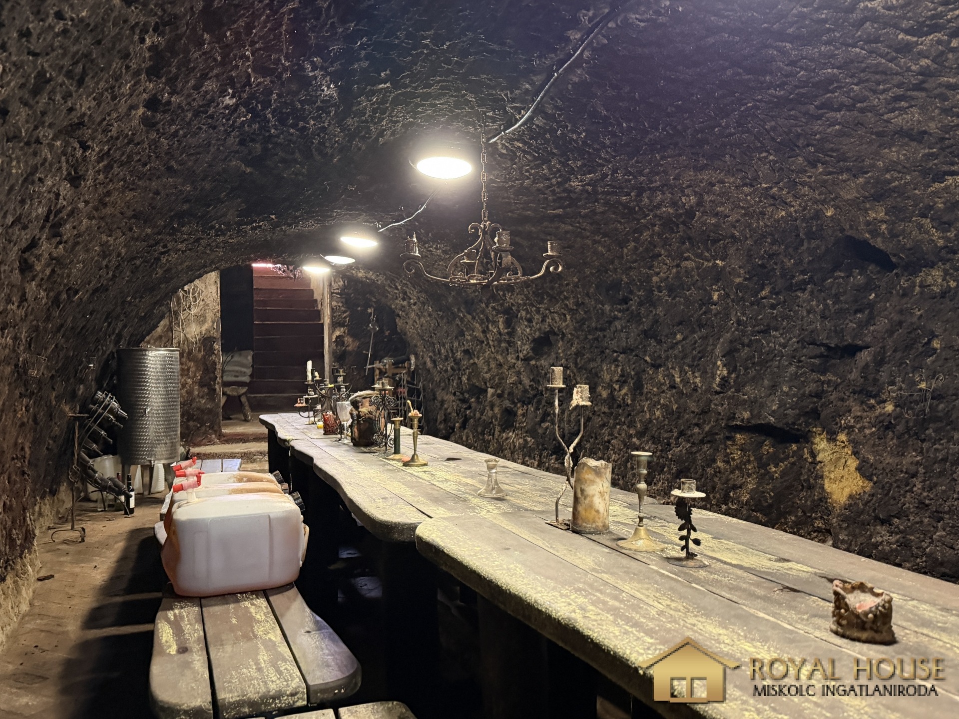 - innen nyílik a kétágú borospince
